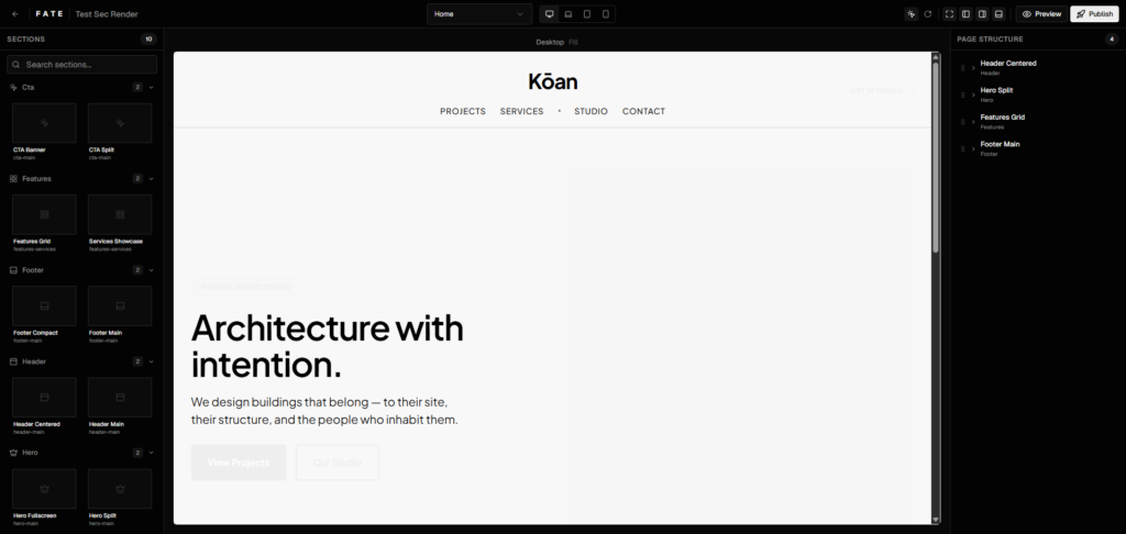 Spent substantial amount on the Git Architecture: Git as the Bridge (no desktop file watcher needed). Every project, created on Fate, gets a Repo.
